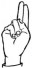 На ћирилици написано КОСТАДИН ПИПЕРАЦ састоји се из 15 слова [?]. Исписано ћириличном једноручном азбуком за глувонеме: